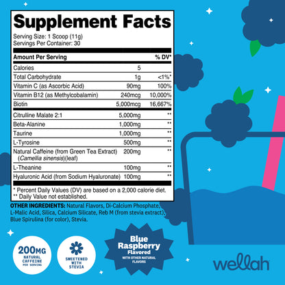 1 Wellah Pre-Workout With Citrulline Malate And L-Theanine | 30 Servings